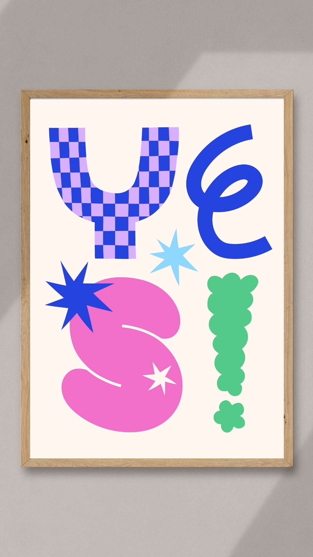 Say it loud, say it proud — YES! This bold, colorful typography artwork brings positivity and cheer wherever it hangs. A perfect mood-lifter for bedrooms, living spaces, or as a gift for someone who believes in the power of optimism.